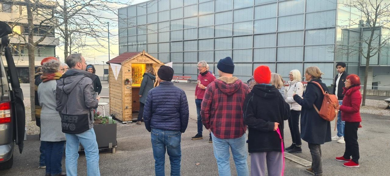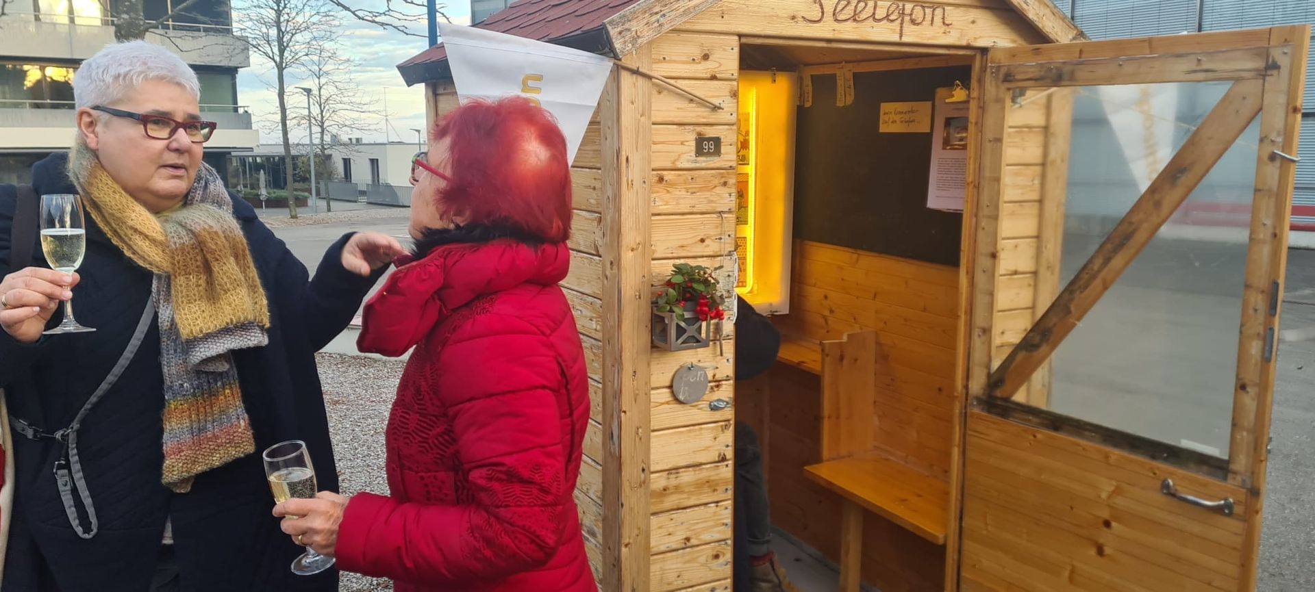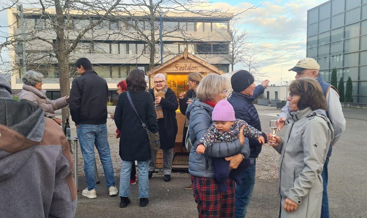 Seelefon auf dem Zentrumsplatz mit Kunstwerken und Audios von
